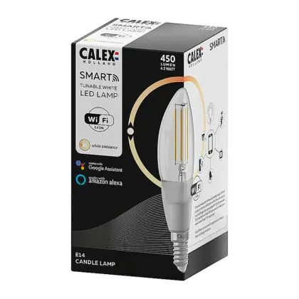 Calex Smart Tuya Wifi E14 Candle Filament 4.5W 450lm - 818-830 Tunable White | Dimmable - Replaces 40W