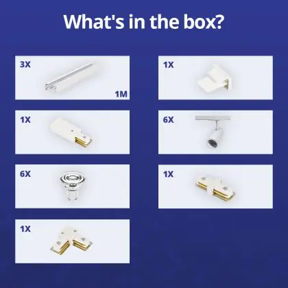 | Manufacturer Name | Complete L shaped 1-Phase Track Set White incl. 6x Spot fixture + GU10 2700K 3W Dim – 1 x 2 meter i | |