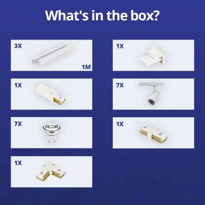 | Manufacturer Name | Complete L shaped 1-Phase Track Set White incl. 7x Spot fixture + GU10 2700K 3W Dim – 1 x 2 meter i | |