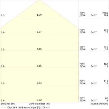 The colour code is a combination of colour rendering (CRI) and light colour (Kelvin). The first number indicates the colour rendering (1 = very poor colour rendering, 9 = maximum colour fastness). The second and third number contains the light colour. Example: the colour code 830 consists of good colour rendering (8) and warm white light (3000K). |