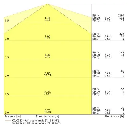 The colour code is a combination of colour rendering (CRI) and light colour (Kelvin). The first number indicates the colour rendering (1 = very poor colour rendering, 9 = maximum colour fastness). The second and third number contains the light colour. Example: the colour code 830 consists of good colour rendering (8) and warm white light (3000K). |