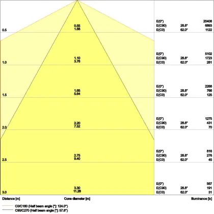A beam angle indicates the angle of the light beam coming from a light source. The smaller the radiation angle in degrees (D), the narrower the beam angle.