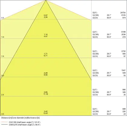 The colour code is a combination of colour rendering (CRI) and light colour (Kelvin). The first number indicates the colour rendering (1 = very poor colour rendering, 9 = maximum colour fastness). The second and third number contains the light colour. Example: the colour code 830 consists of good colour rendering (8) and warm white light (3000K). |
