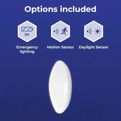 Noxion LED Bulkhead Corido V2 White 12/16/20W 2000lm 830-840-865 CCT | IP44 - Motion and Light Sensor - Emergency 3H