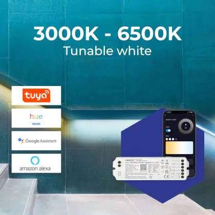 3. Tunable white: The white light can take any values in the listed Kelvin scale, for instance 2200K up to 6500K.