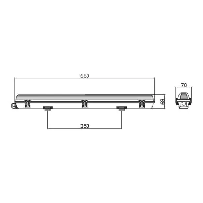 The Noxion LED Waterproof Housing Poseidon V2.0 (EM) is a fixture without a ballast. It's easy to install and designed to work with T8 LED tubes (EM). This model is 60 cm long and designed to hold a single 18-watt tube. To see the model that can hold 2 tubes, click here.