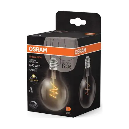 Osram Vintage 1906 LED E27 Globe Filament Clear 4.6W 470lm - 927 Extra Warm White | Best Colour Rendering - Dimmable - Replaces 40W