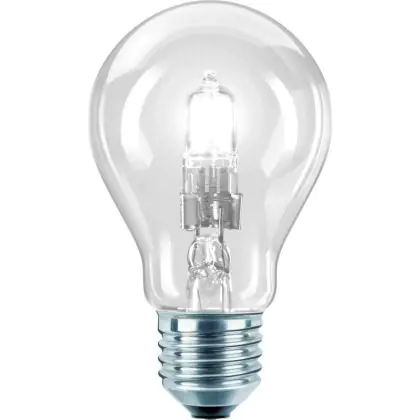 Philips EcoClassic A-Shape are conventional A shaped halogen lamps, suitable for the sector's voltage. They perfectly replace the old halogen lamps of the same form, while providing a light of equal quality or better. All lamps in this range have a E27 base and a A55 shape to provide a perfect fit in the fixture.