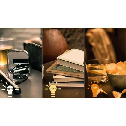 4. Dim to warm: Dimming makes the light warmer (more yellow). The more you dim, the warmer the colour.