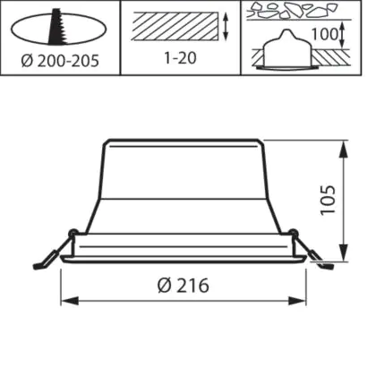 | Cut out (mm) | 200 | |