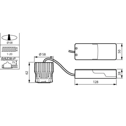 | Cut out (mm) | 68 | |