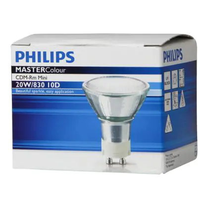 CDM-Rm Mini is equipped with a reflector that can reflect the light in a specific direction. Any-Lamp offers three different diffusion angles in this range: 10D, 25D and 40D. The 10D offers light directed at a particular point. Philips CDM-R Mini 20W 830 GX10 MR16 10D are fitted with a GX10 type base, and will be very easy to install in your old halogen luminaires. With an average lifespan of 15000 hours, Philips CDM-R Mini 20W 830 GX10 MR16 10D enable energy savings of 30% compared to normal lamps.