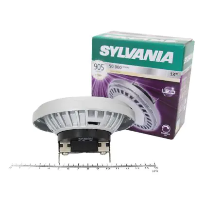 The Sylvania RefLED Superia AR111 Dim lamp offer the possibility to adjust the light intensity. It has also a lifetime of 45000 hours, and will make you do huge energy savings. The Sylvania RefLED Superia AR111 Dim 13W 905lm 830 25D are supplied with a G53-type holder that will let them replace your old halogen lamps without changing your installation.